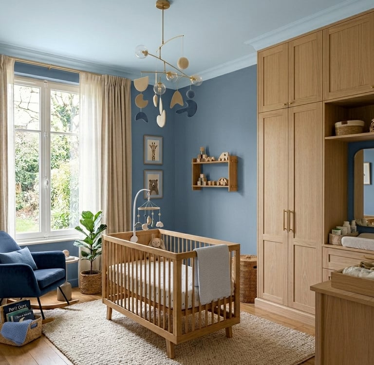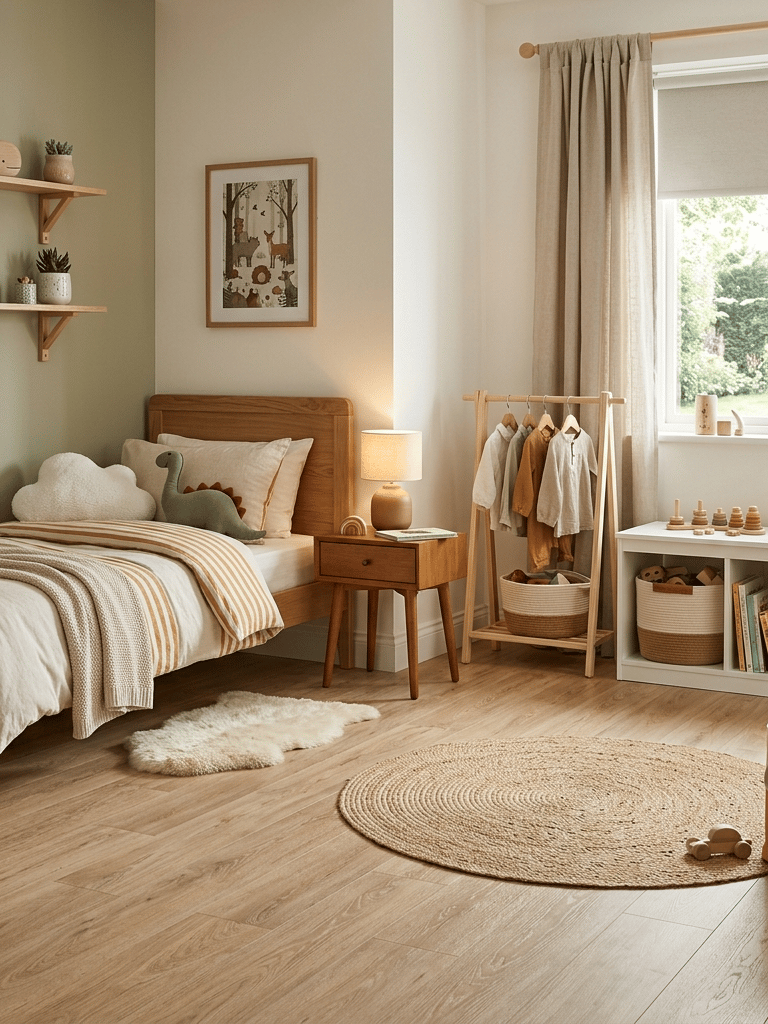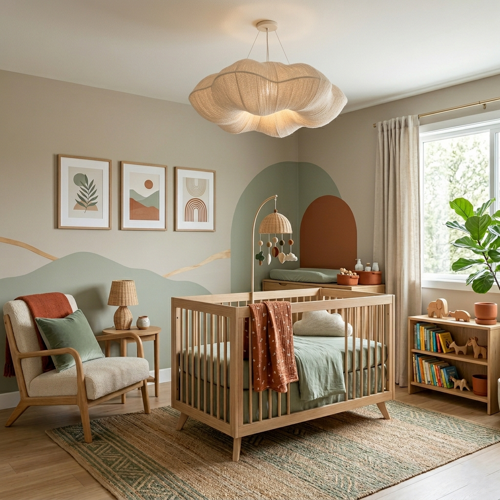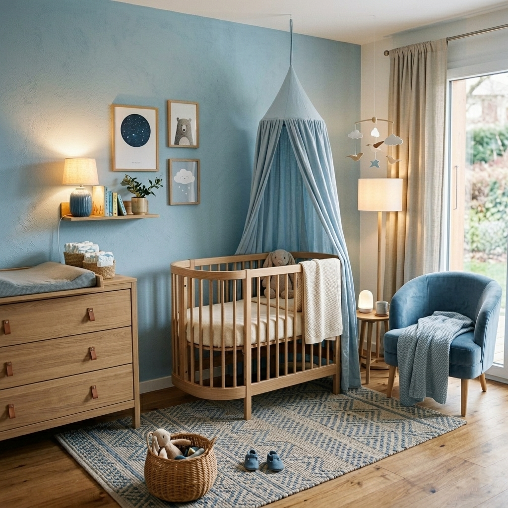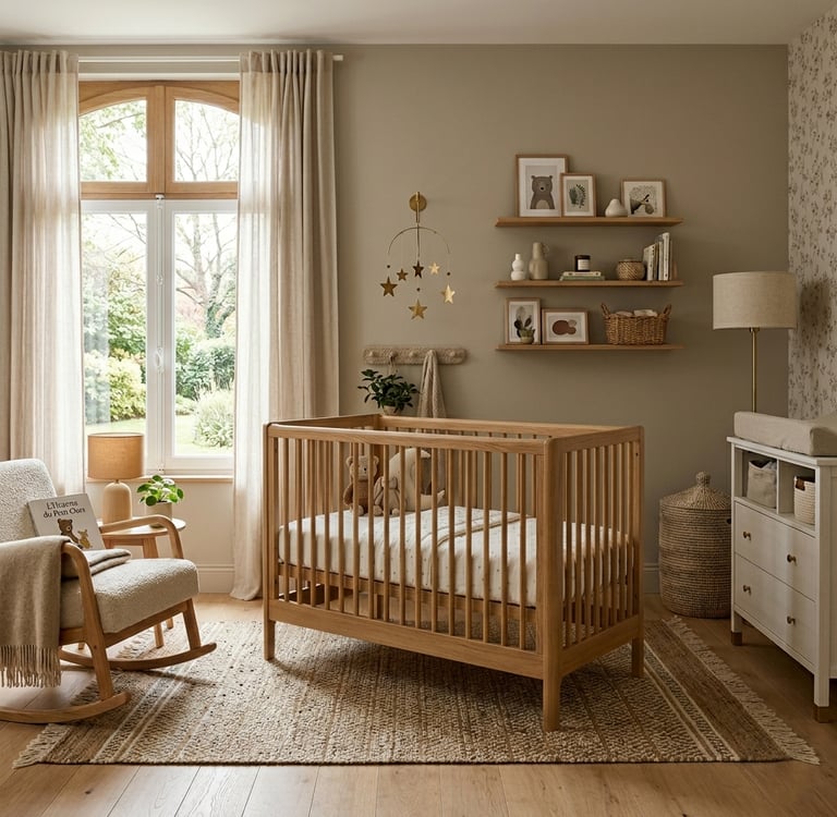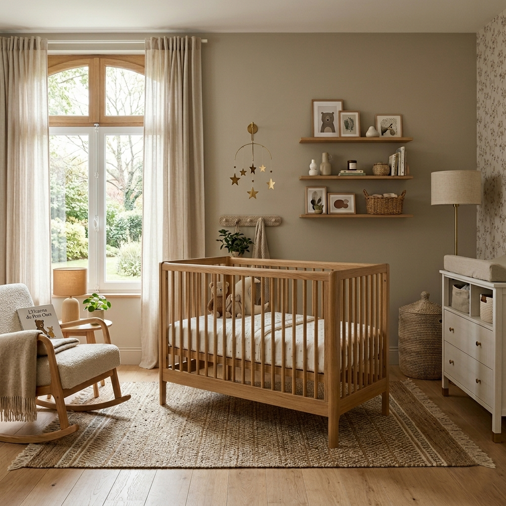 Sécurité maximale, rangements bas, couleurs douces, espace nuit + change.