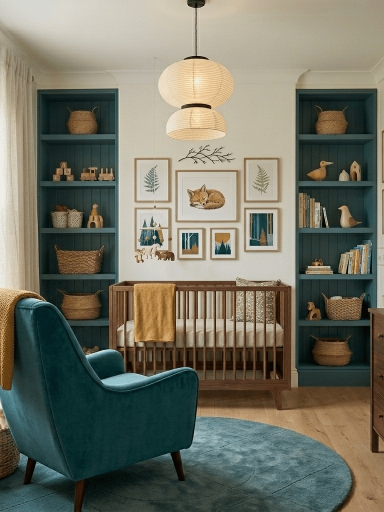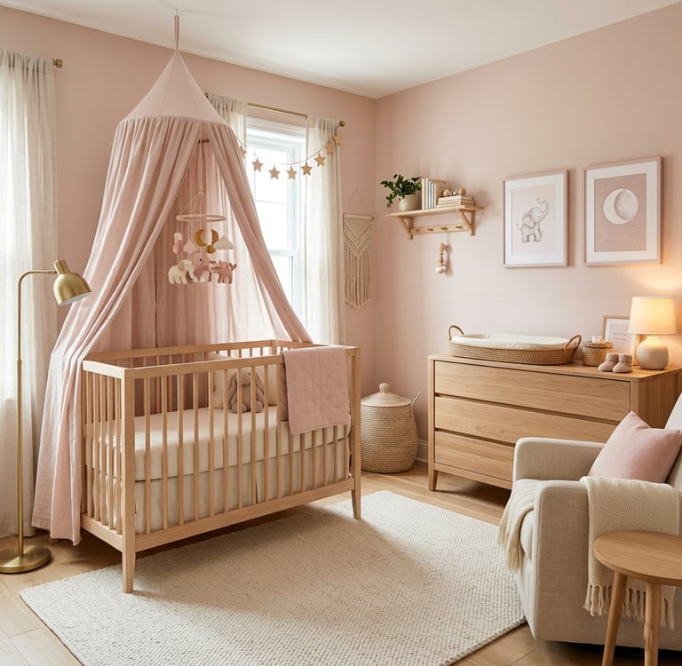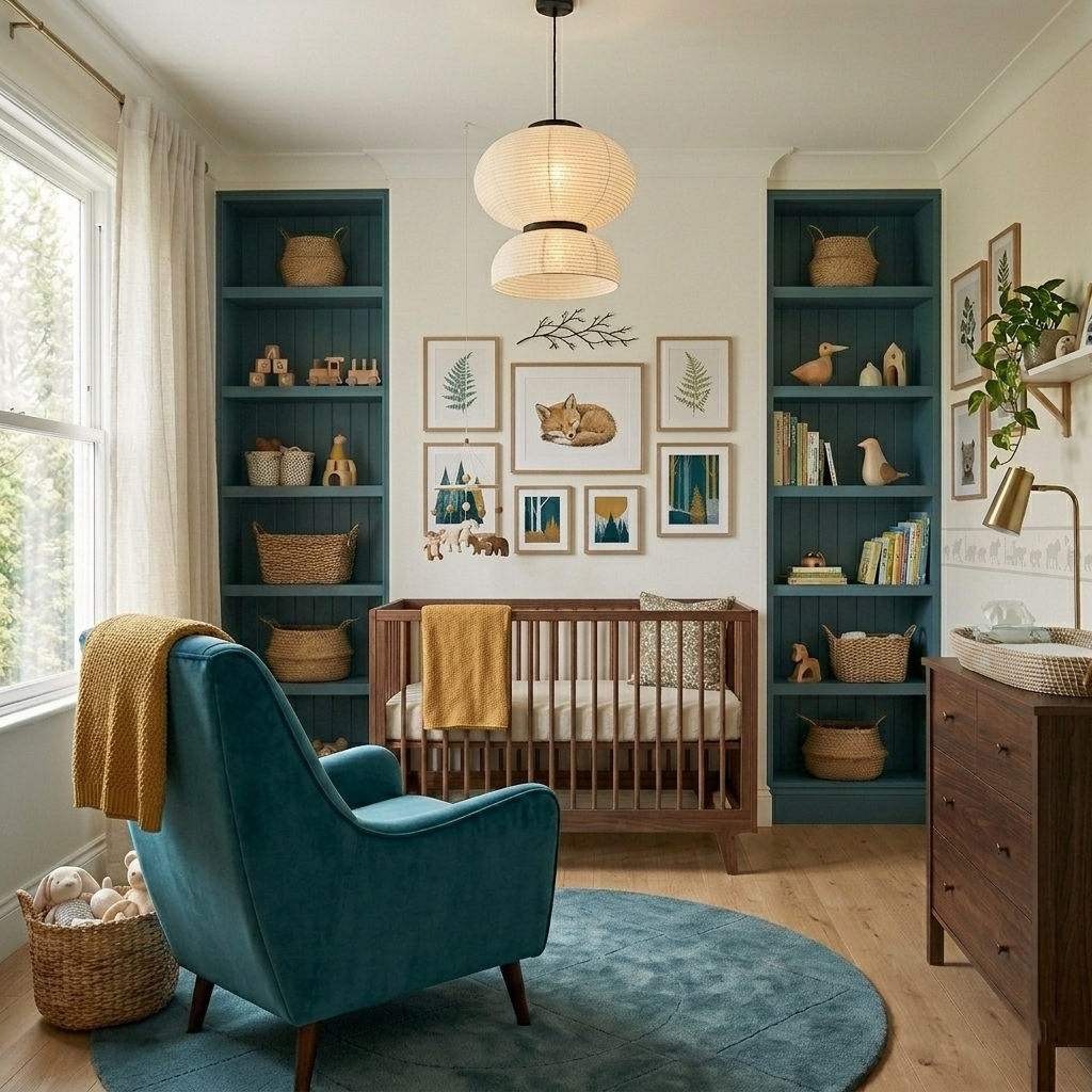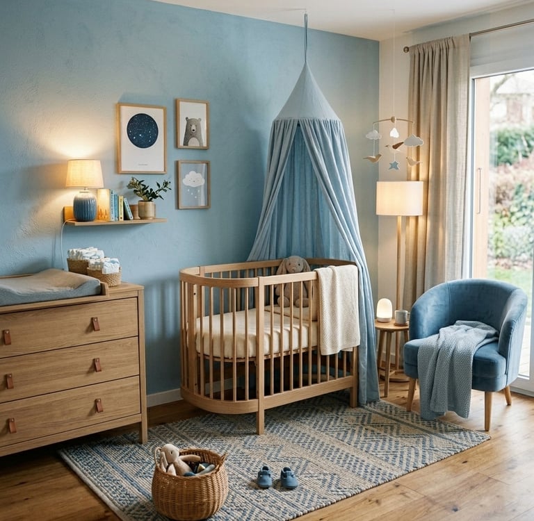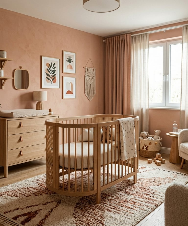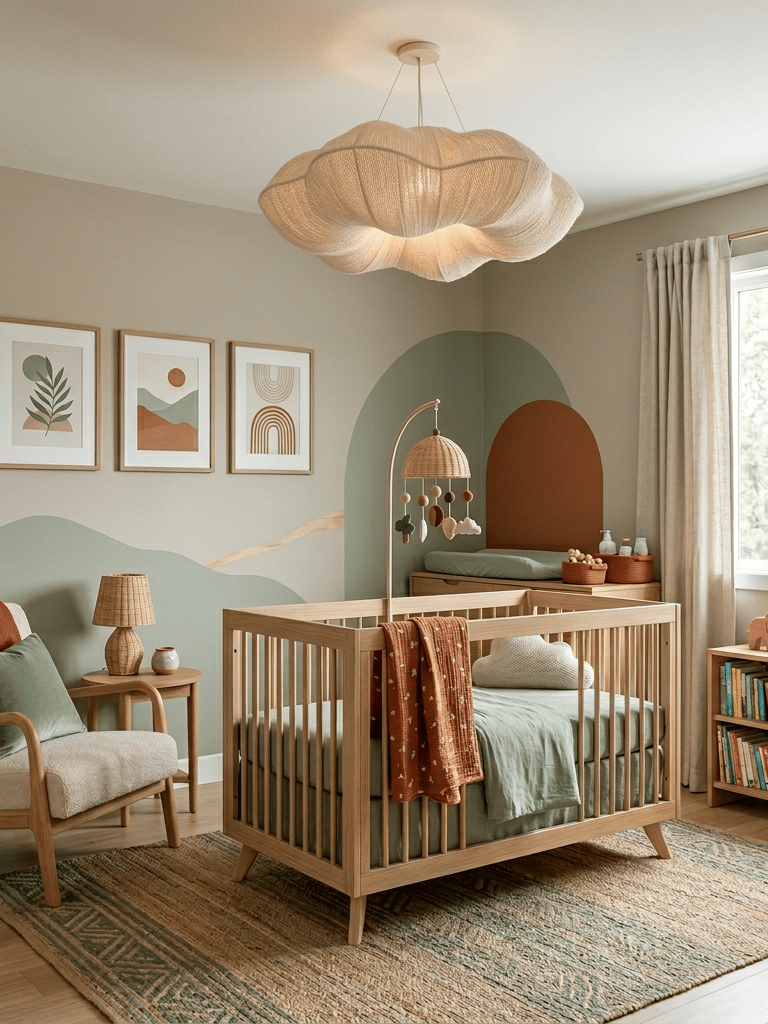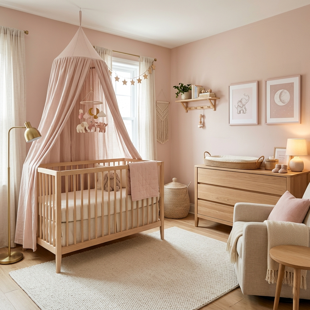 Sécurité maximale, rangements bas, couleurs douces, espace nuit + change.