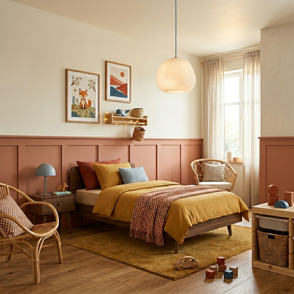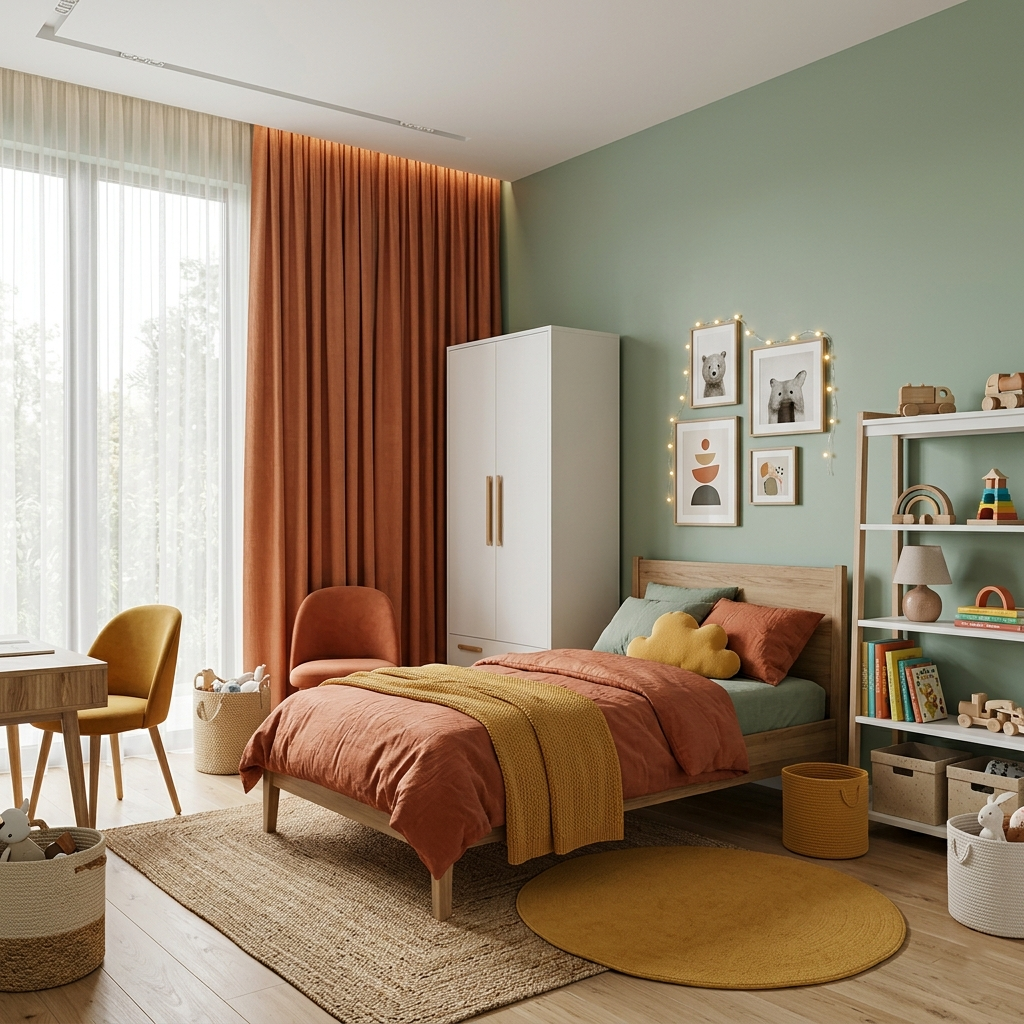 Palette de couleurs cohérente et adaptée à l’enfant (tons doux pour les petits, plus profonds possible pour les ados)
