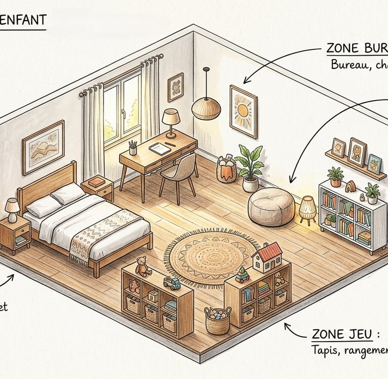 Une chambre enfant / ado doit rester fluide et sécurisée.