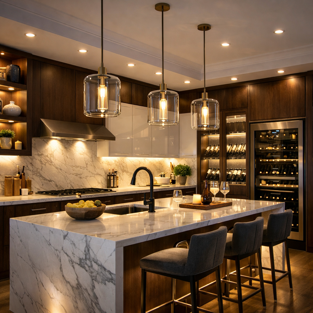 La lumière influence la sécurité, la précision des gestes et l’ambiance générale, la cuisine doit tirer parti de la lumière naturelle, puis être complétée par un éclairage de travail efficace et un éclairage d’ambiance adapté, surtout dans les cuisines ouvertes.