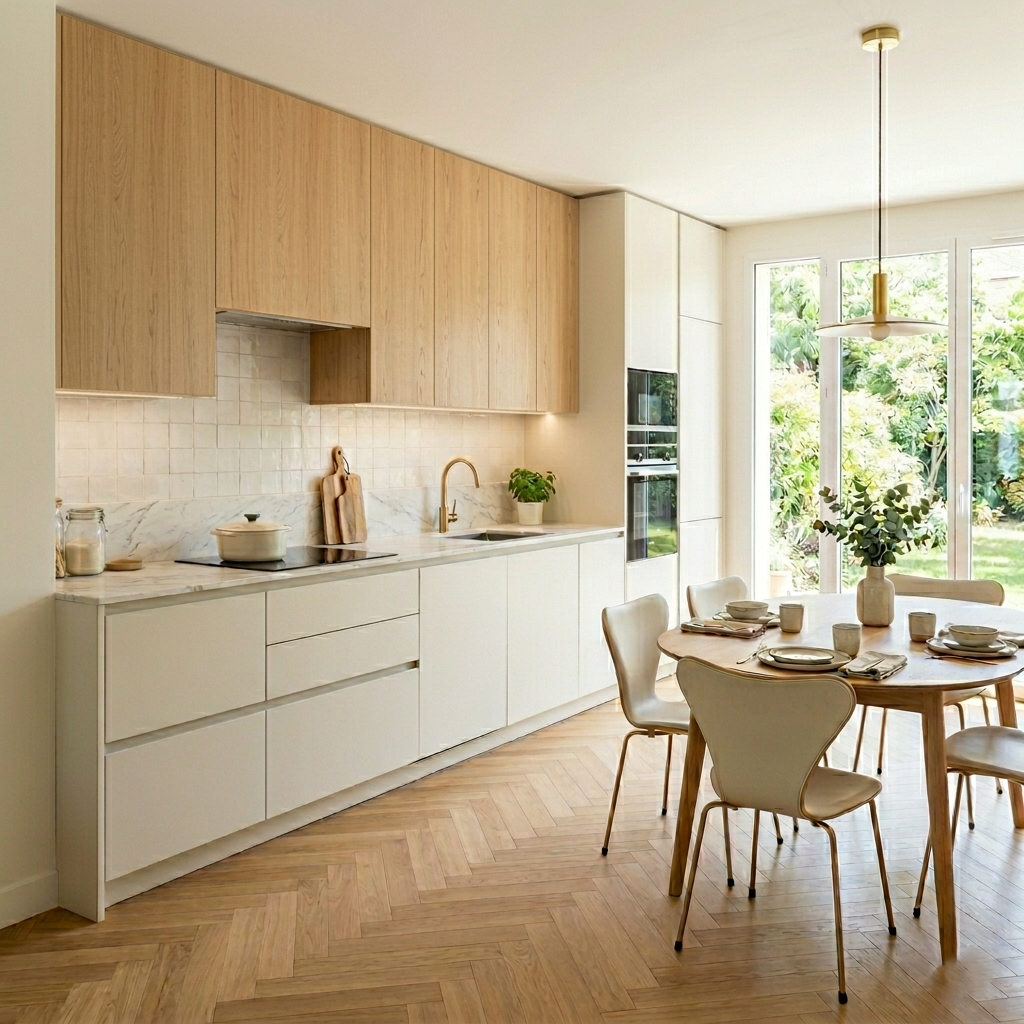 Ce guide rassemble toutes les informations essentielles, présentées de manière claire, structurée et accessible, pour vous aider à imaginer une cuisine qui vous ressemble : fonctionnelle, harmonieuse et agréable à vivre. Que votre cuisine soit petite, ouverte, familiale, très utilisée ou occasionnelle, vous trouverez ici des solutions concrètes pour créer un espace efficace, chaleureux et durable.