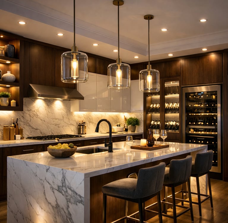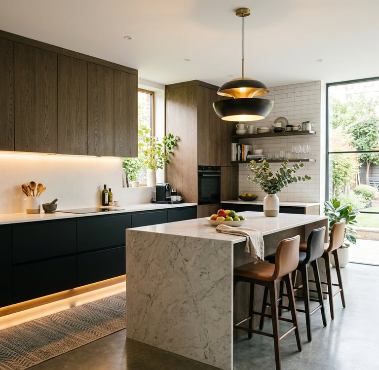 Créer une cuisine agréable grâce à un éclairage et des matériaux bien choisis