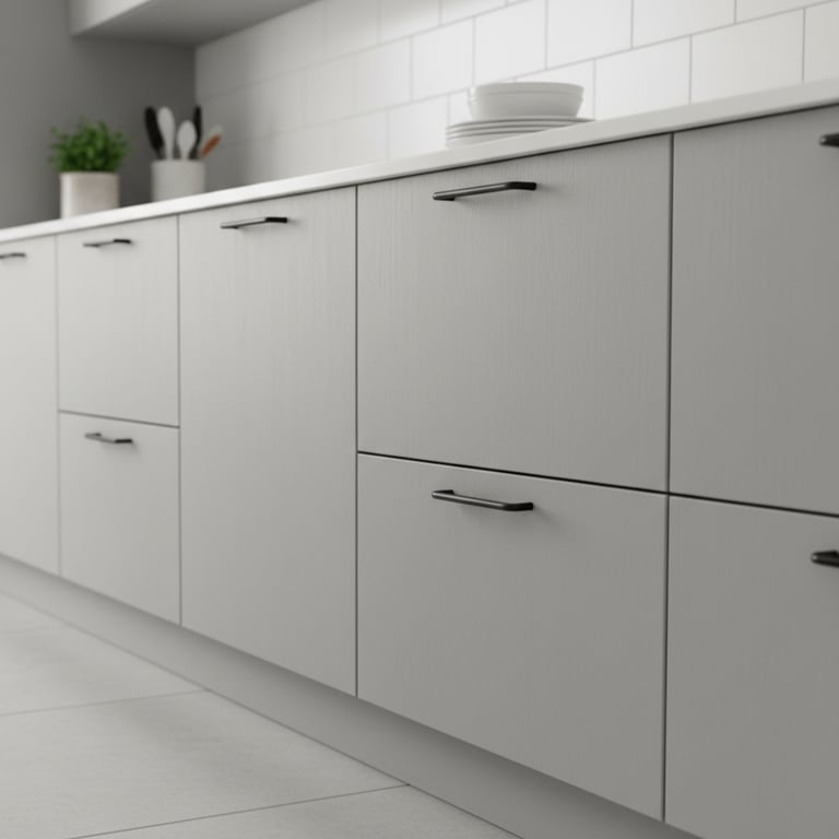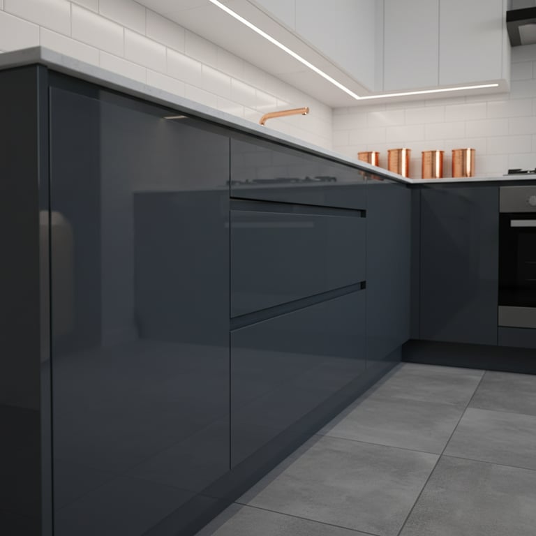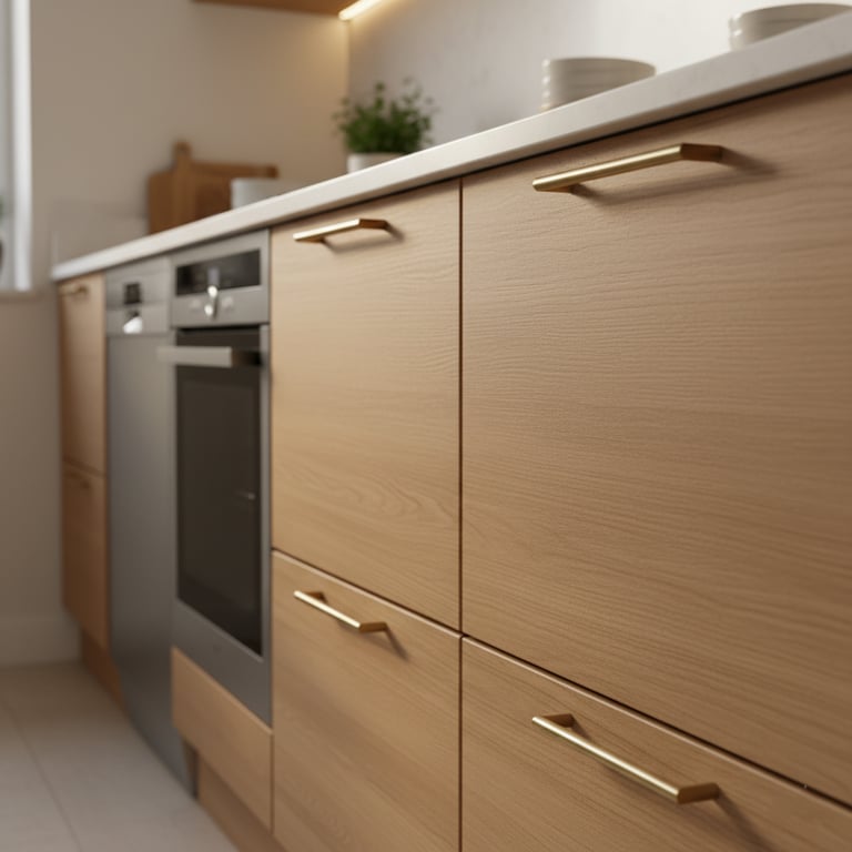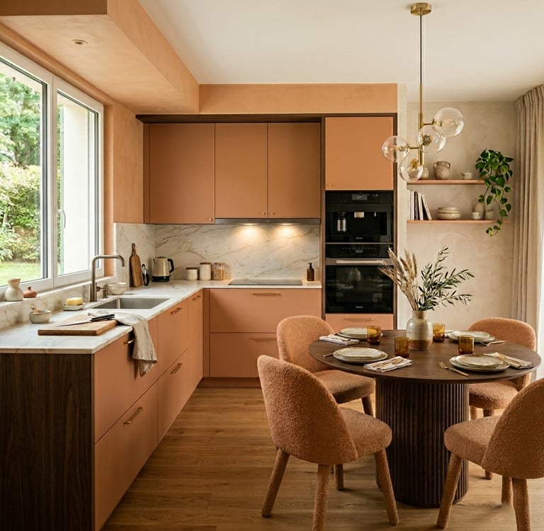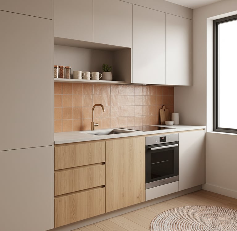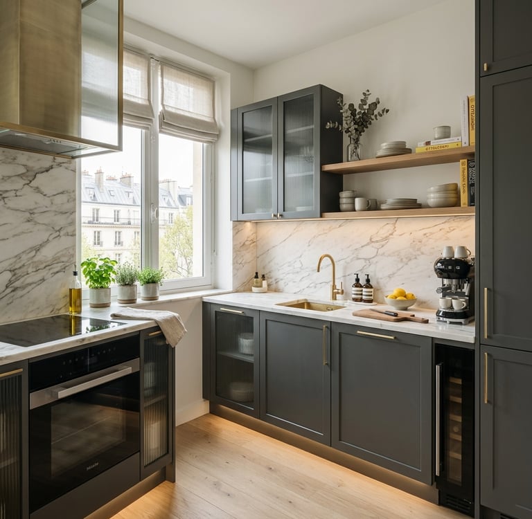Palette de couleurs cohérente (harmonie entre façades, plan de travail, crédence)