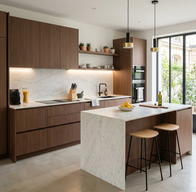 Une cuisine bien pensée n’est jamais le fruit du hasard, c’est l’équilibre entre une implantation fluide, des rangements intelligents, des matériaux adaptés, un éclairage bien réparti et des choix esthétiques cohérents.