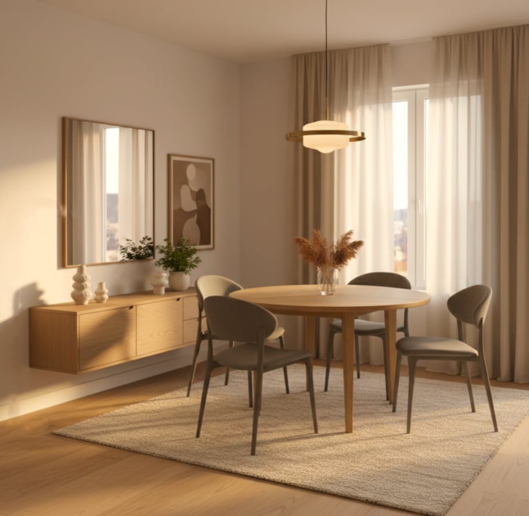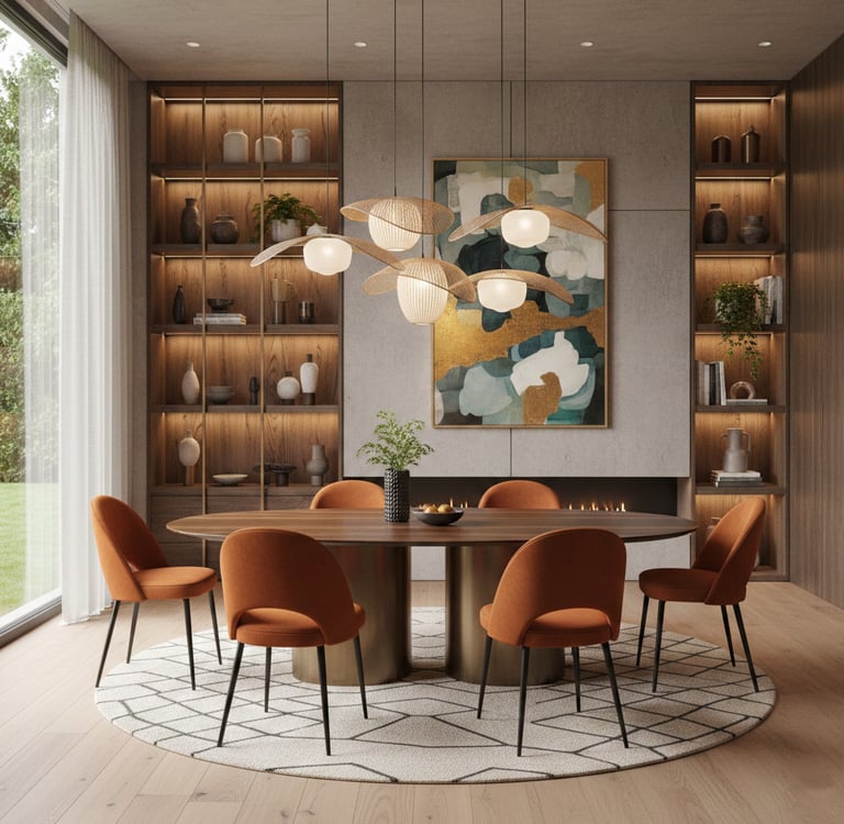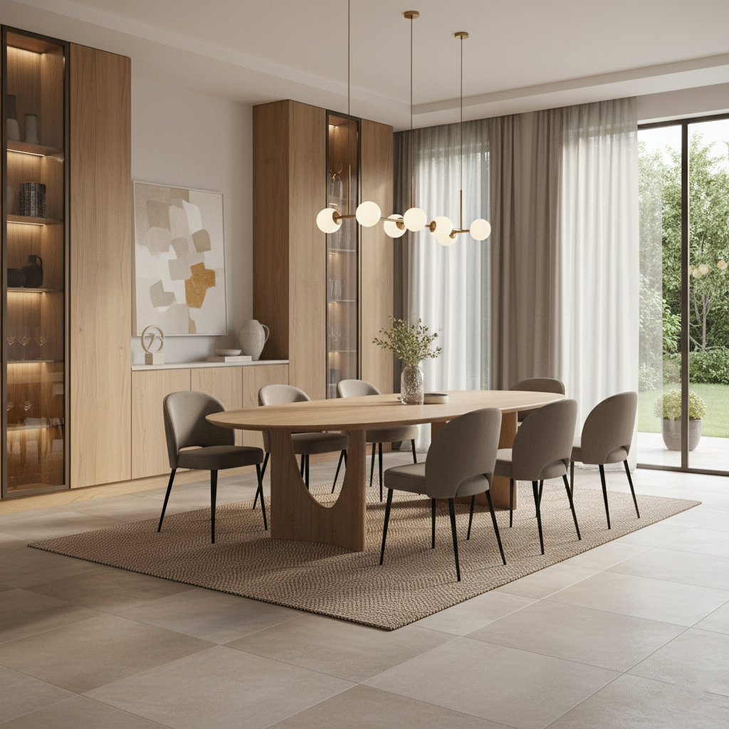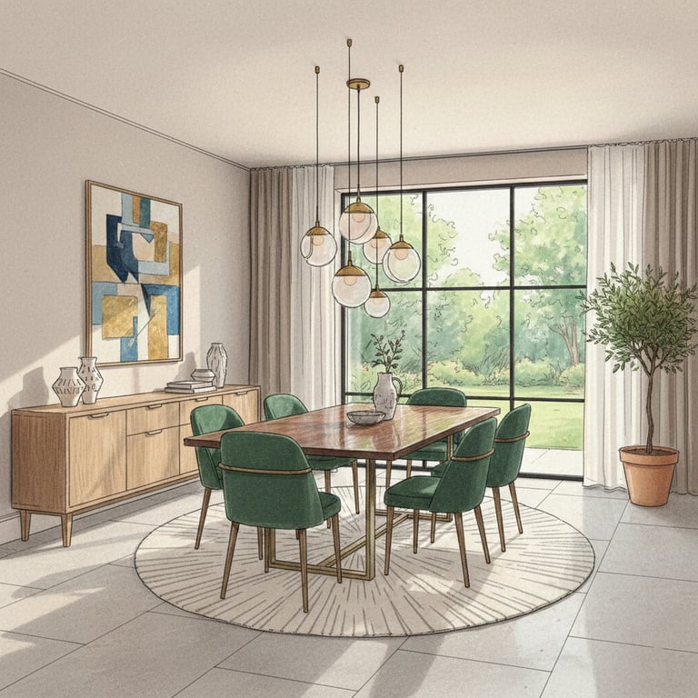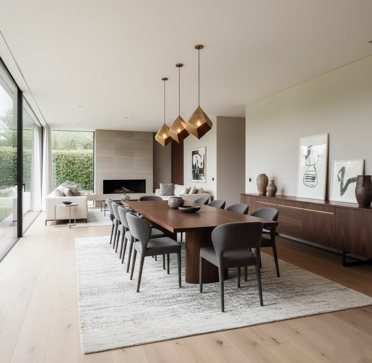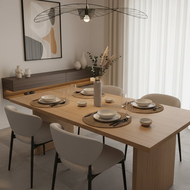 Cette spécificité implique une attention particulière à la circulation autour de la table, une cohérence forte avec les pièces attenantes (salon, cuisine), un équilibre entre esthétique et praticité, un mobilier proportionné pour éviter l’effet "pièce encombrée". La salle à manger doit être structurée, lisible et agréable à vivre, même lorsque l’espace est réduit.