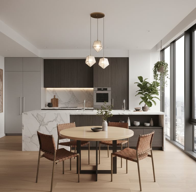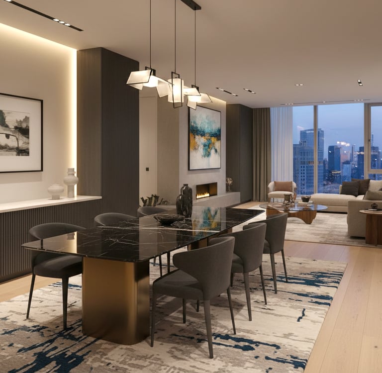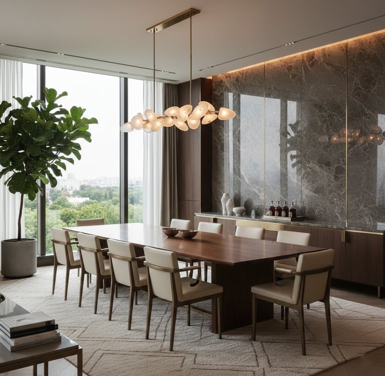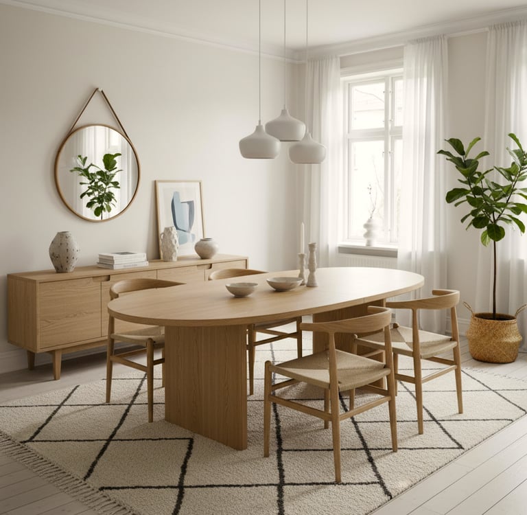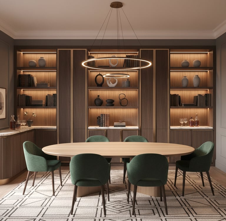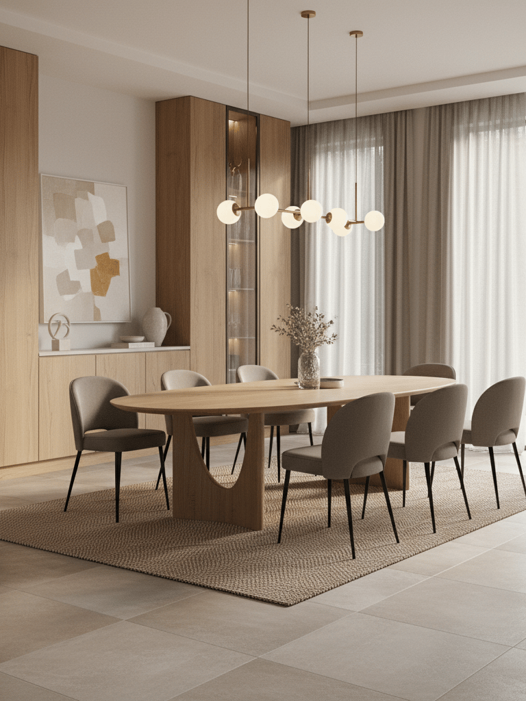 Cette spécificité implique une attention particulière à la circulation autour de la table, une cohérence forte avec les pièces attenantes (salon, cuisine), un équilibre entre esthétique et praticité, un mobilier proportionné pour éviter l’effet "pièce encombrée". La salle à manger doit être structurée, lisible et agréable à vivre, même lorsque l’espace est réduit.