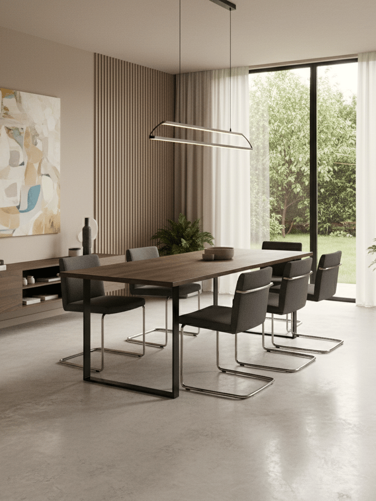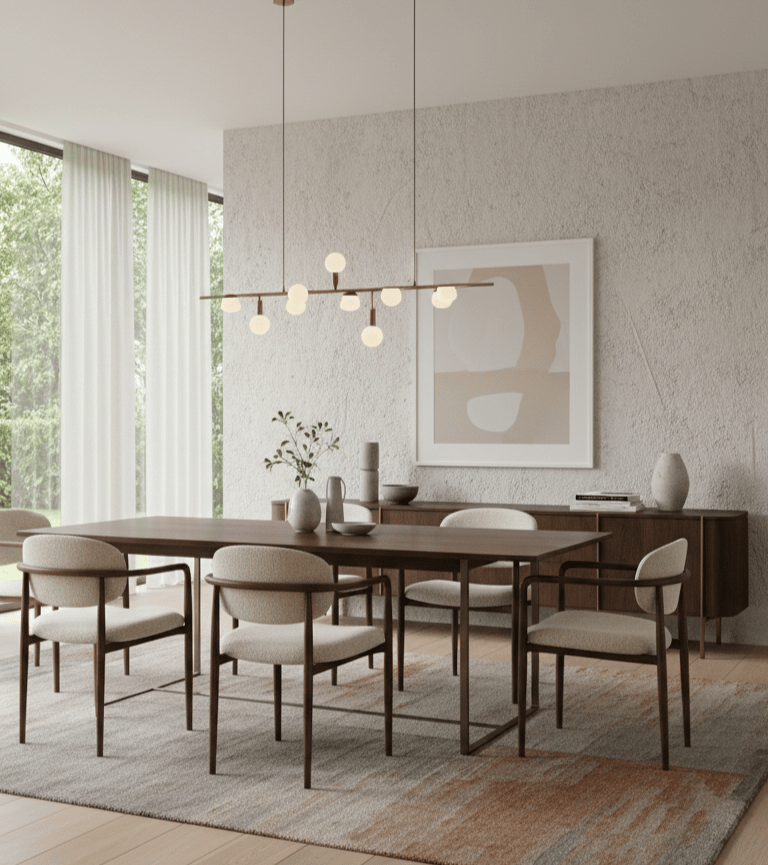 Une salle à manger réussie n’est jamais le fruit du hasard, c’est l’équilibre entre une circulation fluide, une table bien proportionnée, des chaises confortables, une palette cohérente, des matériaux adaptés, un éclairage chaleureux et des meubles choisis avec intention.