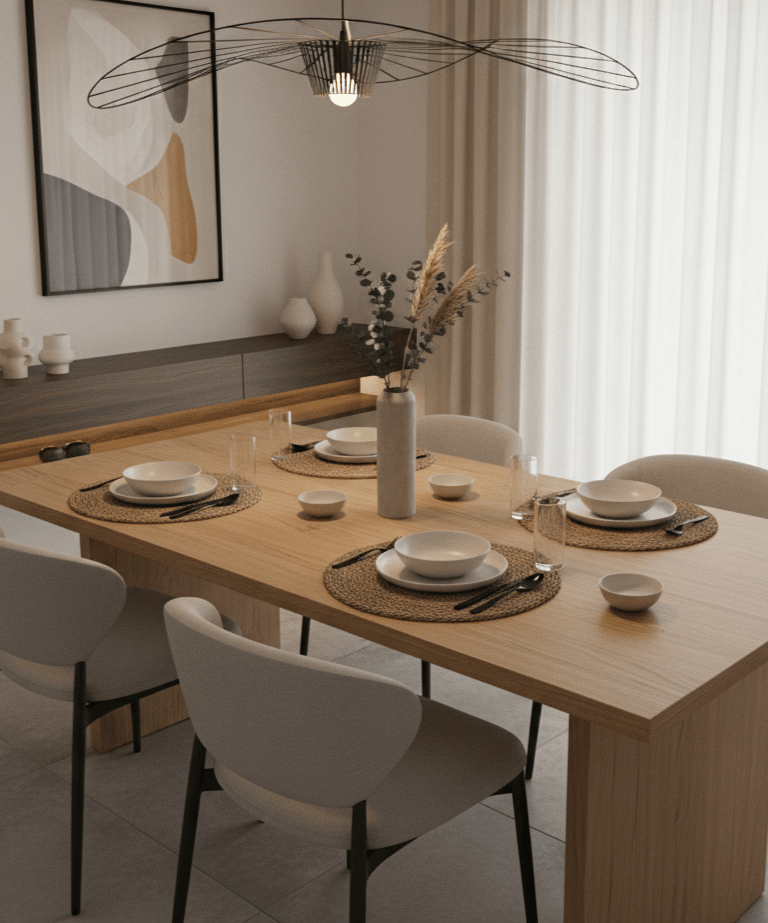 En appliquant les principes de ce guide, vous disposez désormais de toutes les clés pour transformer votre salle à manger en un espace harmonieux, convivial et agréable à vivre au quotidien. Chaque décision compte, la taille de la table, l’espacement des chaises, la hauteur de la suspension, la palette choisie, les textures que vous associez, la manière de structurer l’espace autour du buffet. Même les petits ajustements, une lampe sur le buffet, un miroir bien placé, un tapis tissé plat, peuvent changer profondément l’atmosphère.