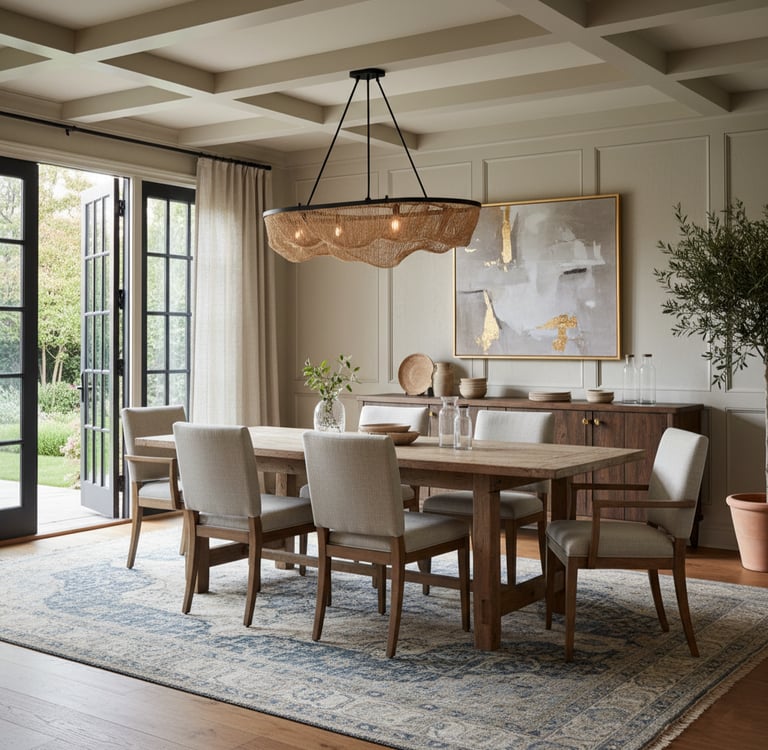 Une fois la structure posée, il est temps d’affiner l’ambiance (proportions, couleurs, matériaux, éclairage, textiles, accessoires). C’est cette étape qui donne à la salle à manger son caractère, sa chaleur et son confort.