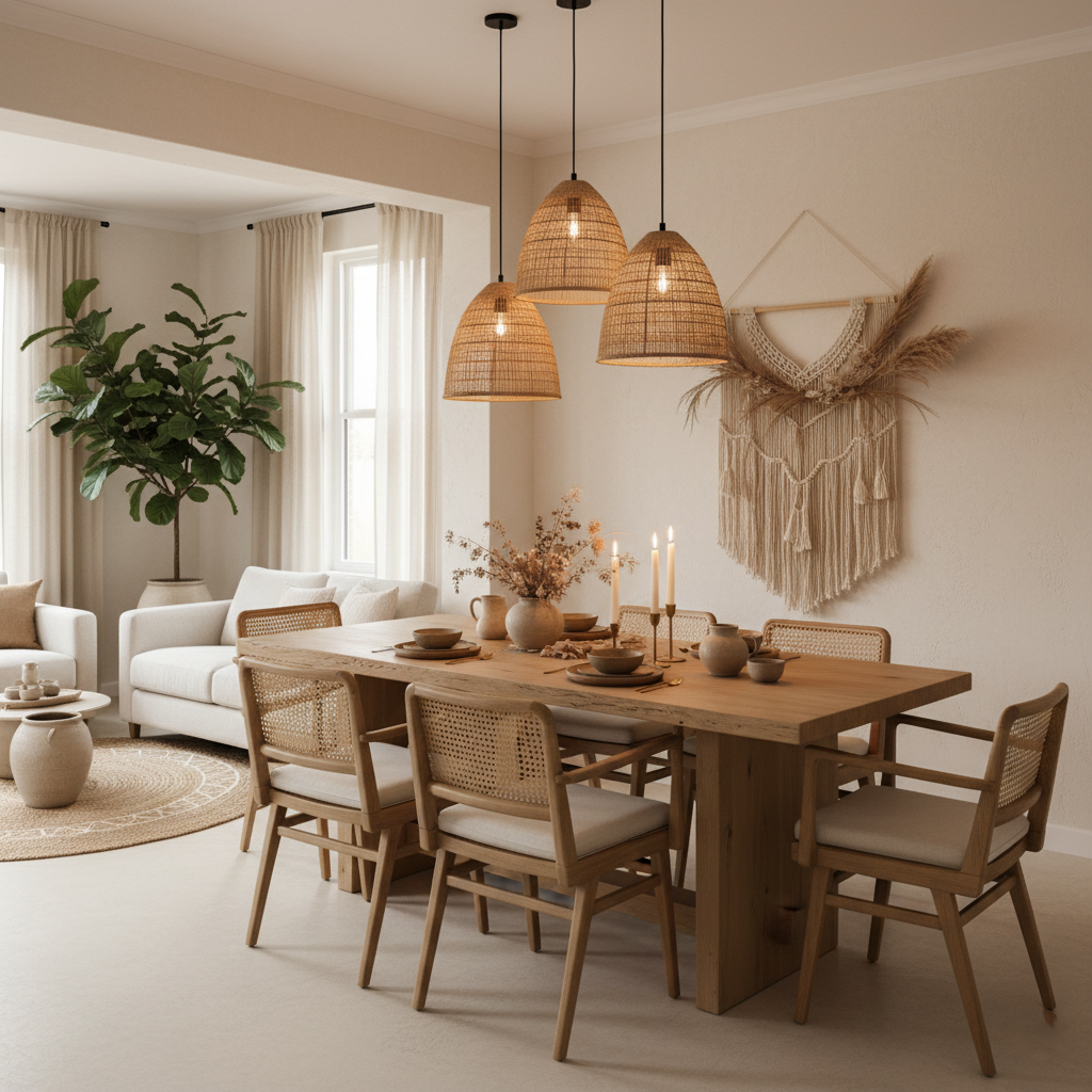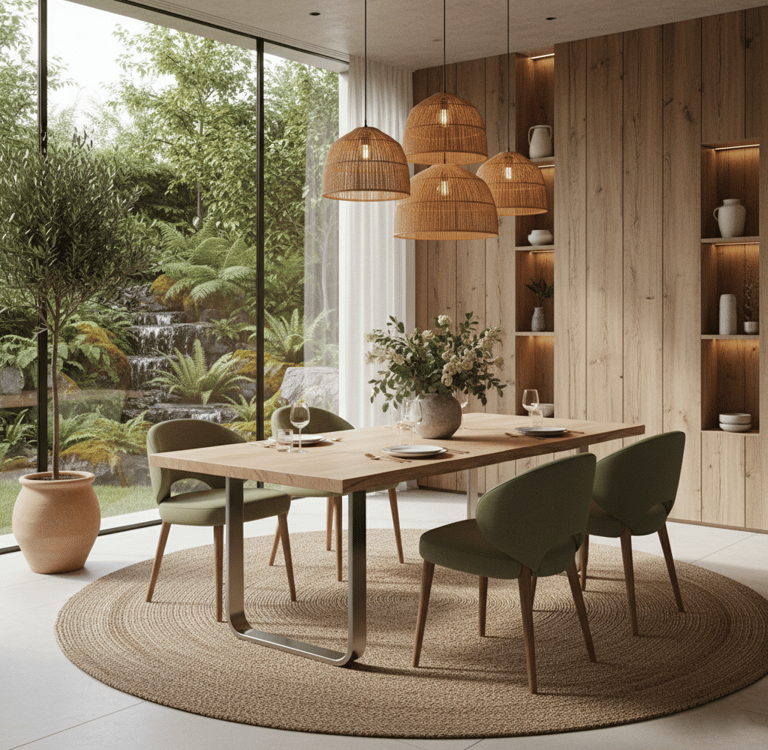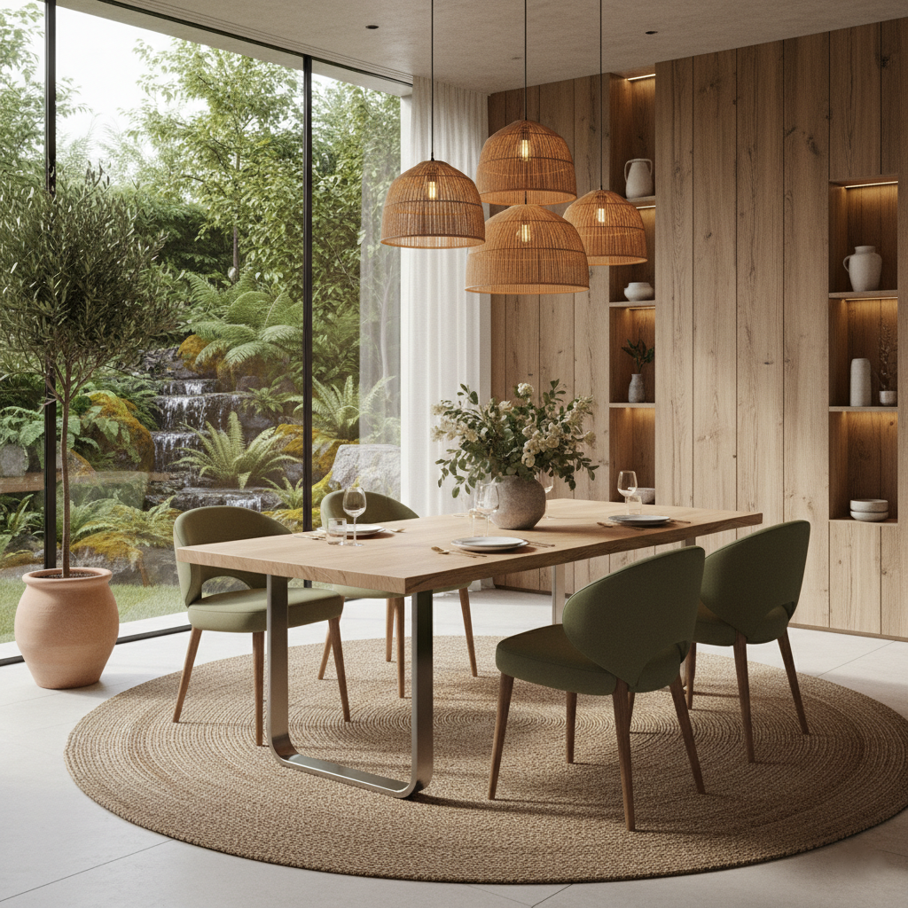 Mélange de textures (bois, céramique, textile, métal) pour réchauffer l’ambiance