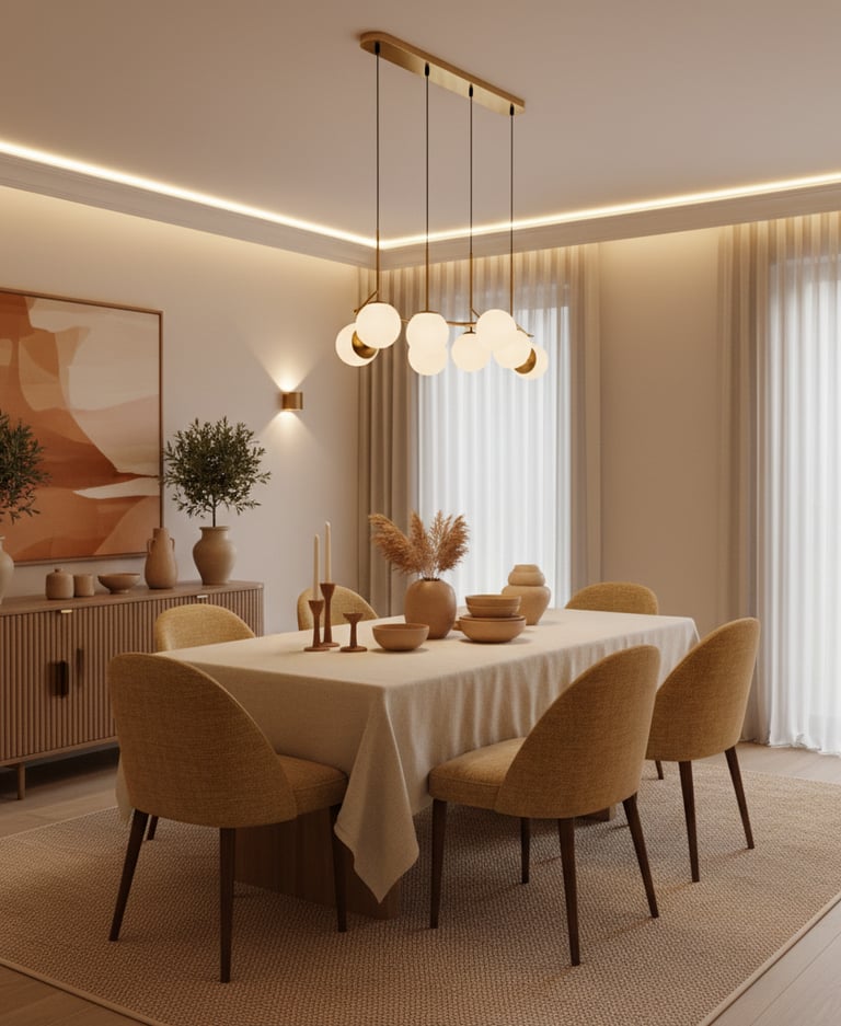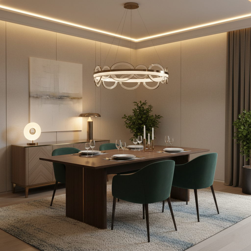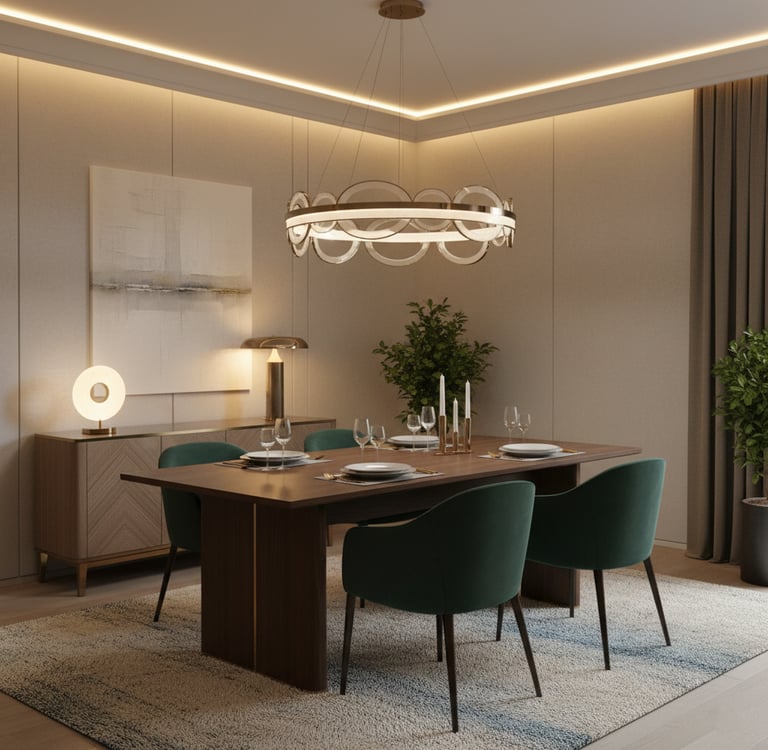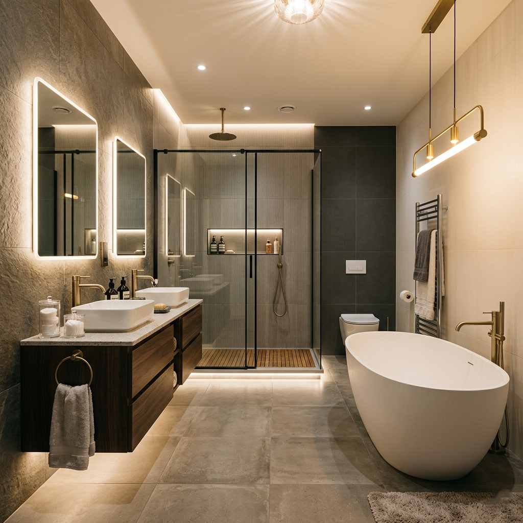 Éclairage réparti en plusieurs sources (générale + miroir + ambiance)