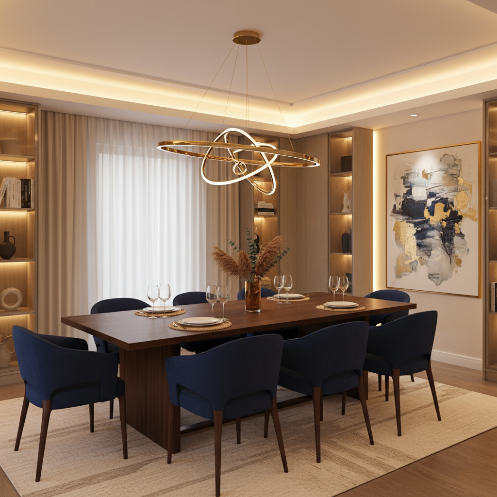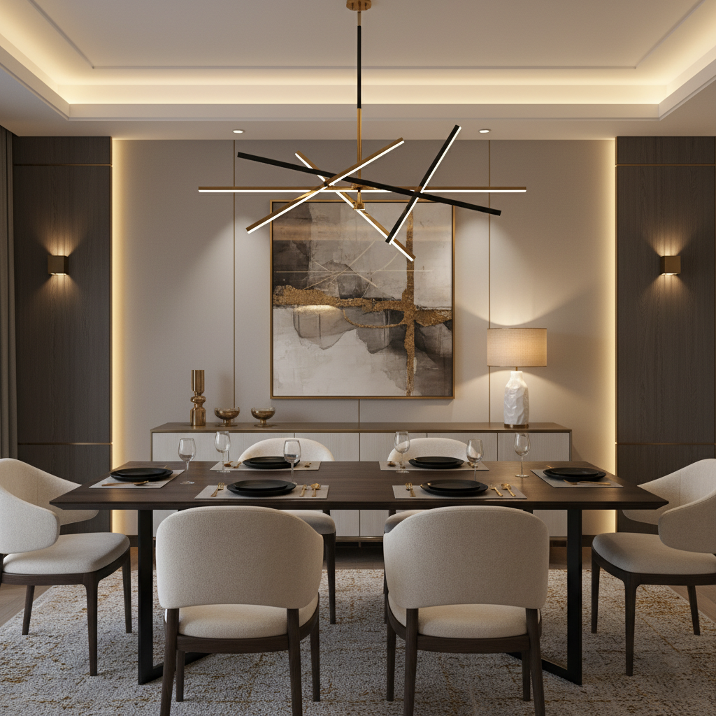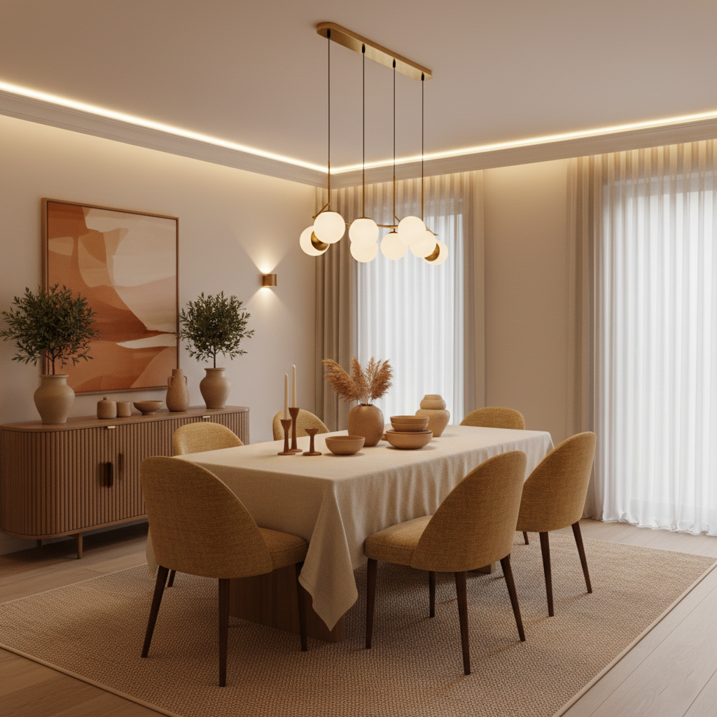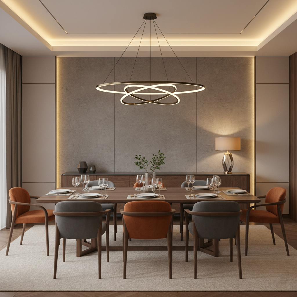 Éclairage réparti en plusieurs sources (générale + miroir + ambiance)