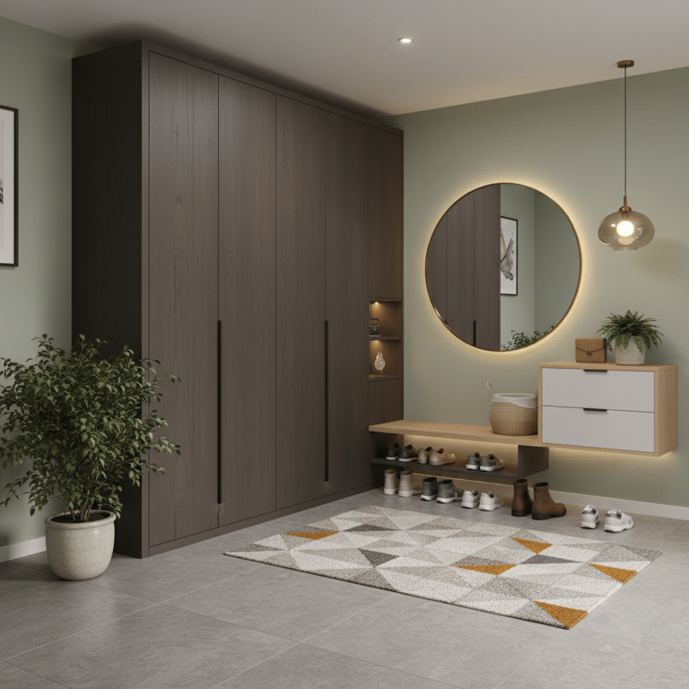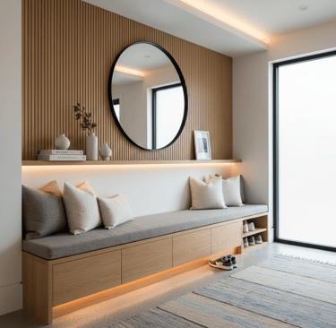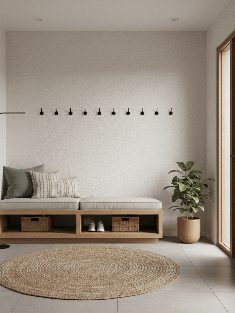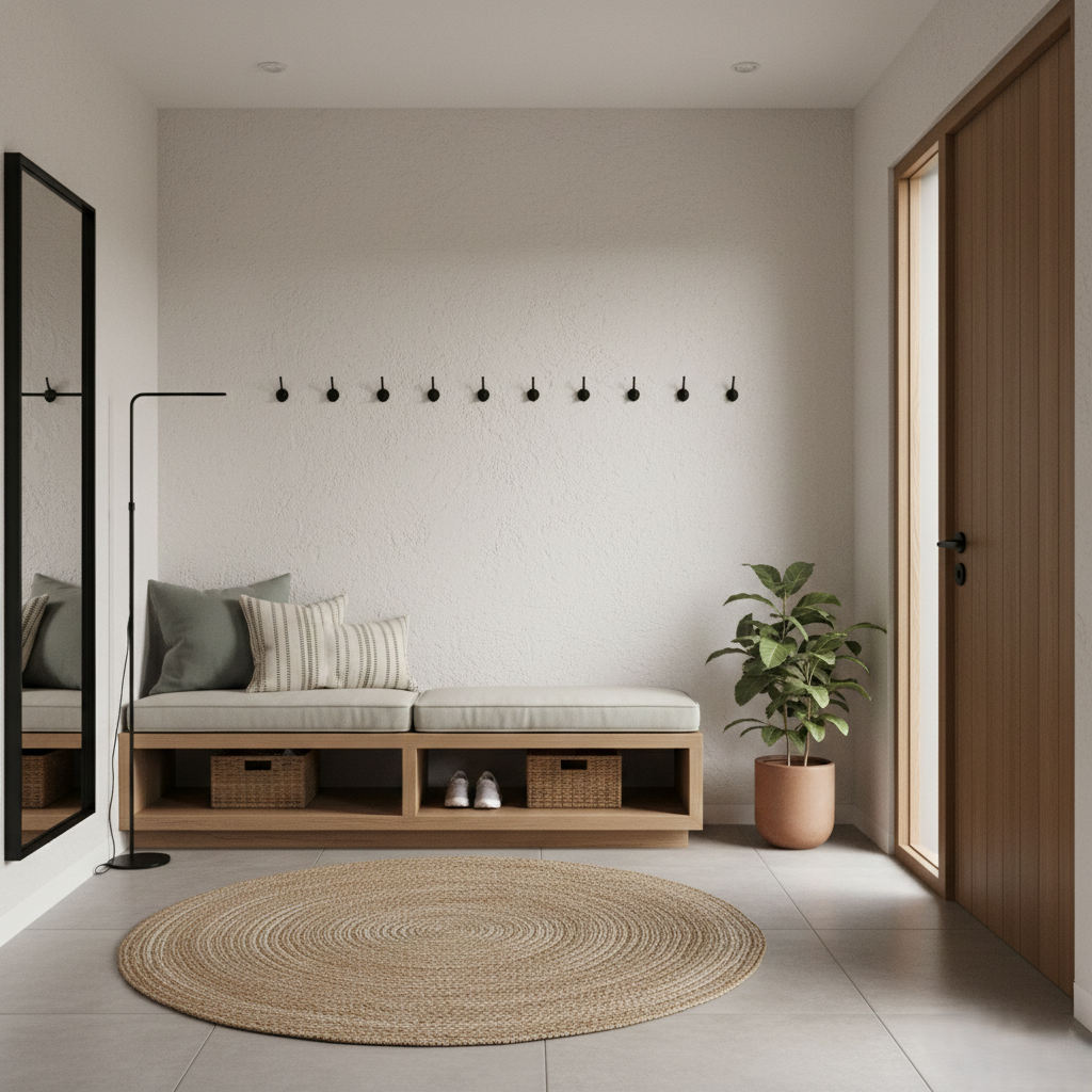 Pour ceux qui ont besoin d’un espace pratique avant de sortir ou en rentrant, meuble à chaussures, patères, banc, vide‑poches : tout doit être accessible et bien organisé.