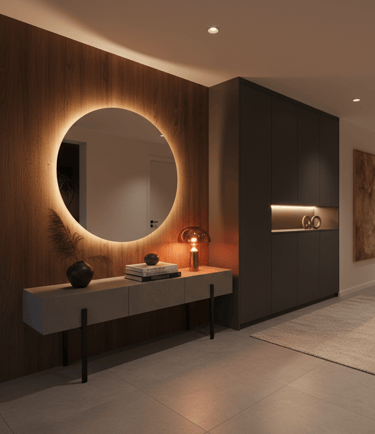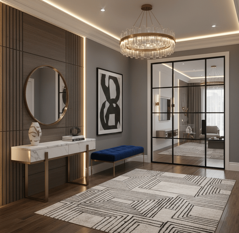 Une entrée ou un couloir bien pensé n’est jamais le fruit du hasard, c’est l’équilibre entre une circulation fluide, des meubles proportionnés, des rangements intelligents, une lumière chaleureuse et des choix cohérents en matière de couleurs et de matériaux.
